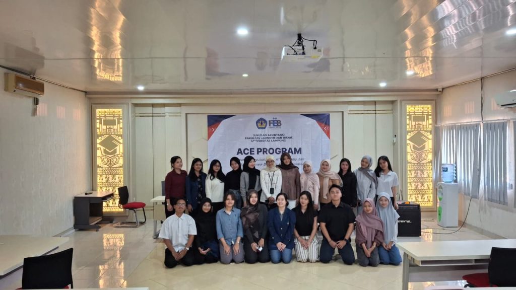 FEB Unila – Program Studi Akuntansi Fakultas Ekonomi dan Bisnis Universitas Lampung (FEB Unila) kembali menyelenggarakan kegiatan pengembangan kompetensi mahasiswa melalui ACE Program (Accounting Career Enhancement) pada Senin, 6 April 2026 di Ruang E207.