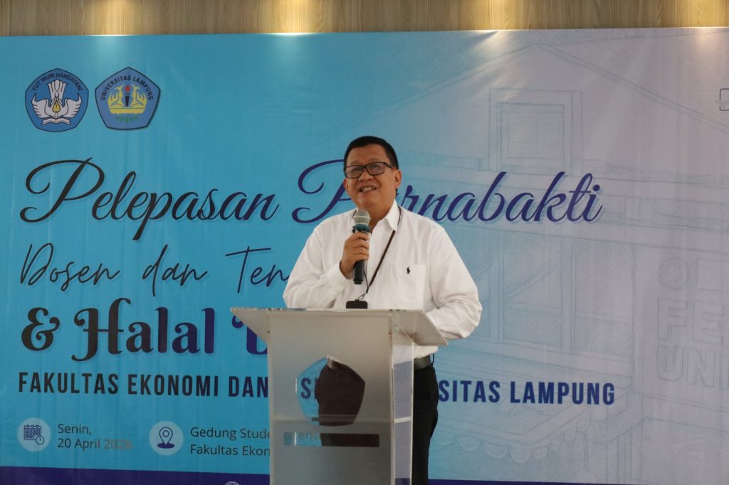 FEB Unila — Fakultas Ekonomi dan Bisnis (FEB) Universitas Lampung menyelenggarakan acara “Pelepasan Purnabakti Dosen dan Tenaga Kependidikan (Tendik) & Halal Bihalal” pada Senin, 20 April 2026, bertempat di Gedung Student Center FEB Universitas Lampung.