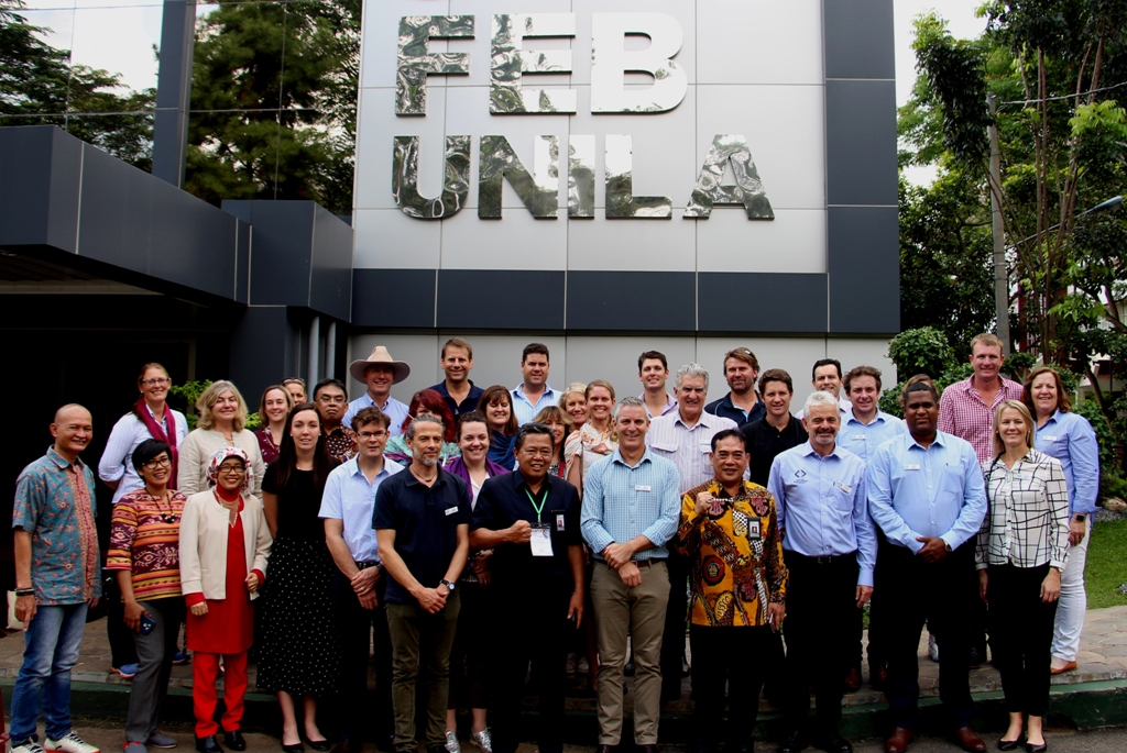 FEB Unila | Selasa pagi (08/05), Fakultas Ekonomi dan Bisnis Universitas Lampung kedatangan 36 orang pengusaha mikro dan menegah yang berasal dari berbagai pedesaan di Australia yang tergabung dalam Australian Rural Leadership Program (ARLP). Kegiatan yang diadakan di Gedung Dekanat FEB Unila ini dihadiri oleh Dekan FEB Unila Prof. Dr. Satria Bangsawan, S.E., M.Si. dan Wakil Dekan Bidang Akademik dan Kerjasama Dr. Mahrinasari, S.E., M.Sc.