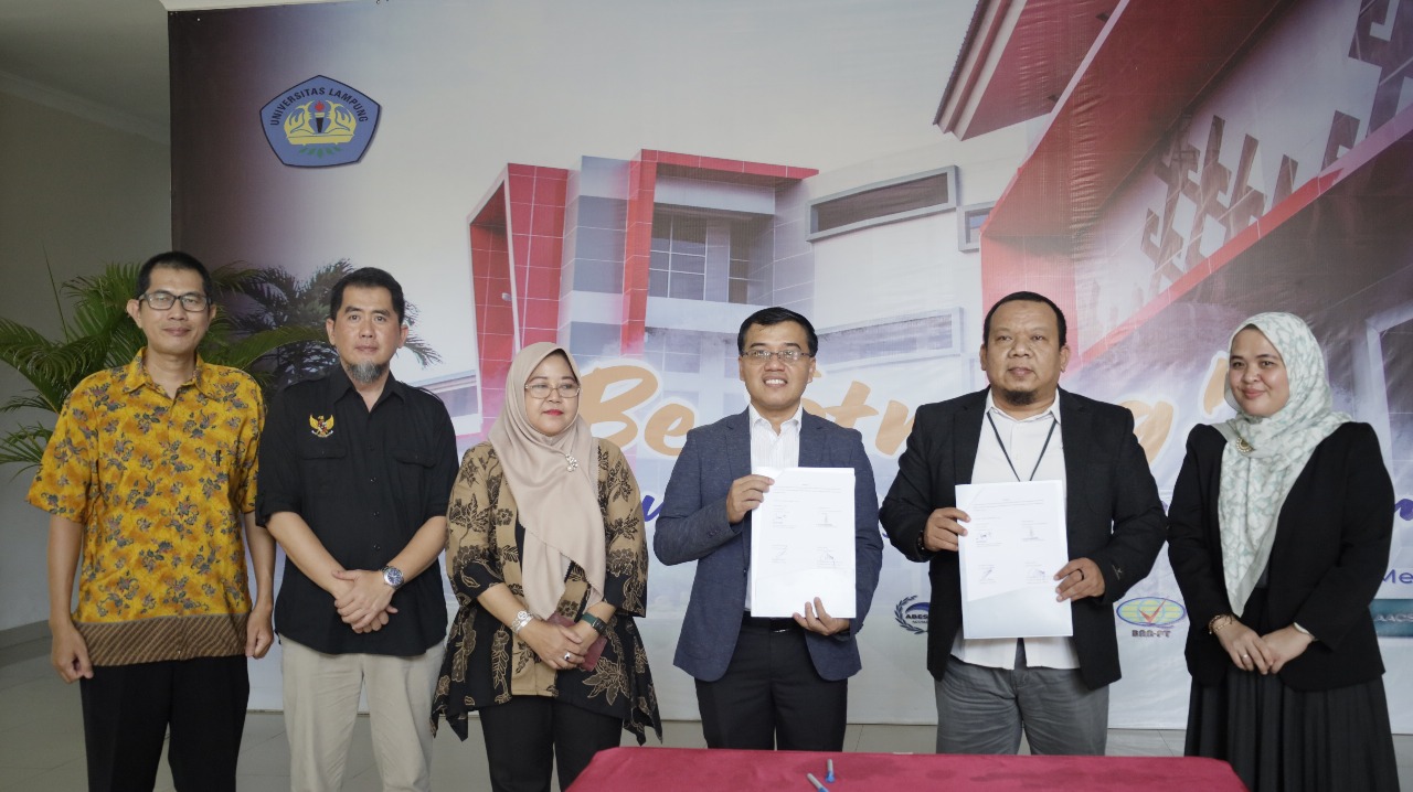 Acara dilanjutkan dengan penandatanganan Berita Acara Serah Terima (BAST) lahan TGLC antara pihak FEB Unila dan PT Pegadaian, didampingi oleh konsultan pengawas dari PT Kalayman Arsitek, Doddy H. Subagya.