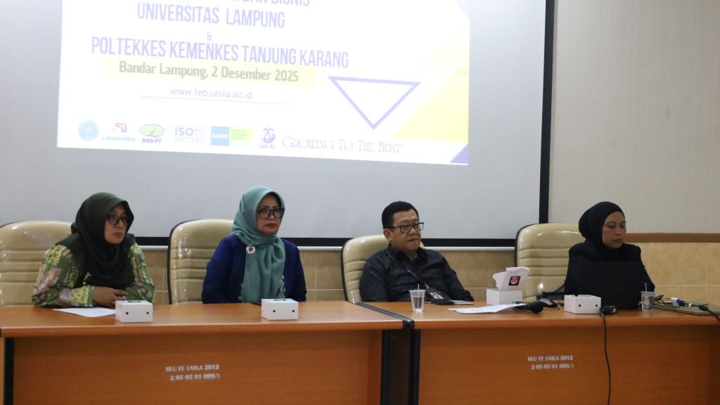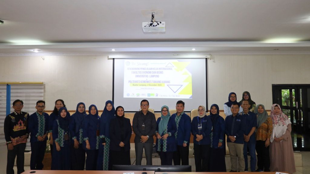 FEB Unila – Fakultas Ekonomi dan Bisnis Universitas Lampung (FEB Unila) melaksanakan kegiatan Benchmarking Pengelolaan Kelas Internasional bersama Poltekkes Kemenkes Tanjung Karang di Gedung Dekanat FEB Unila pada Selasa, 2 Desember 2025.