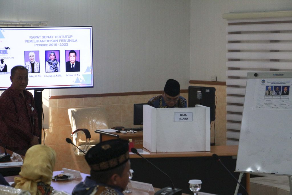 Dekan sekaligus Ketua Senat FEB Unila Prof. Dr. Satria Bangsawan, S.E., M.Si. saat membuka rapat senat tertutup menyampaikan, sesuai amanah dari segenap sivitas akademika baik dari dosen, tenaga kependidikan maupun mahasiswa, pemilihan dekan merupakan suatu tahapan yang penting untuk menentukan pemimpin selanjutnya. Prof. Satria berharap siapa pun yang terpilih dan menjadi dekan harus mendapat dukungan sepenuhnya dari semua kalangan.