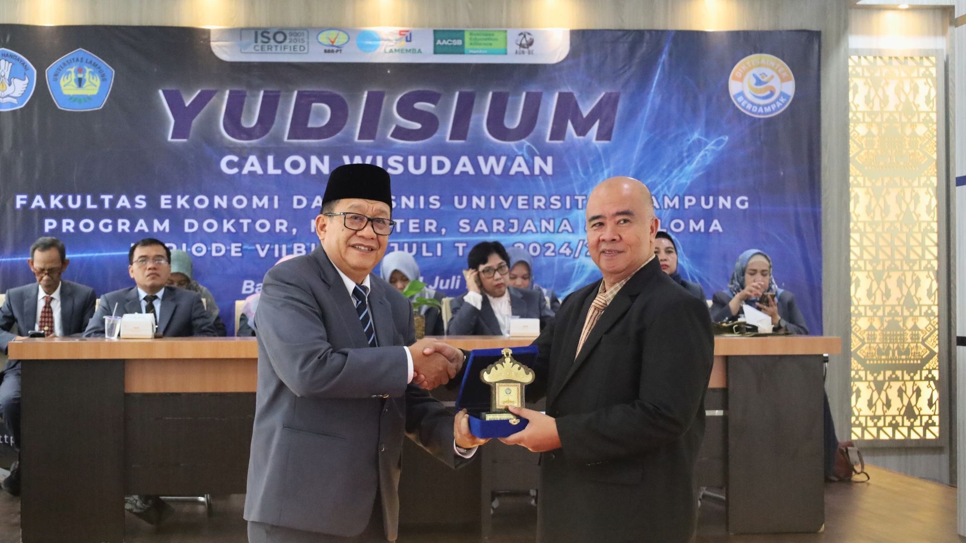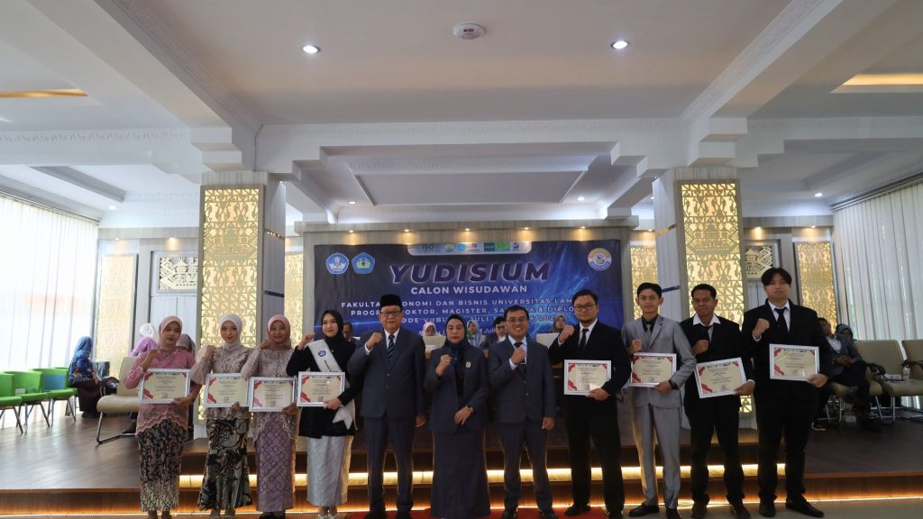 FEB Unila – Fakultas Ekonomi dan Bisnis ( FEB) Universitas Lampung (Unila) kembali gelar Yudisium Calon Wisudawan Periode VII T.A 2024/2025 pada hari Kamis, 24 Juli 2025, di Auditorium Student Center FEB. Acara berlangsung khidmat dan dihadiri langsung oleh pimpinan fakultas, dosen, tenaga kependidikan, serta keluarga calon wisudawan.