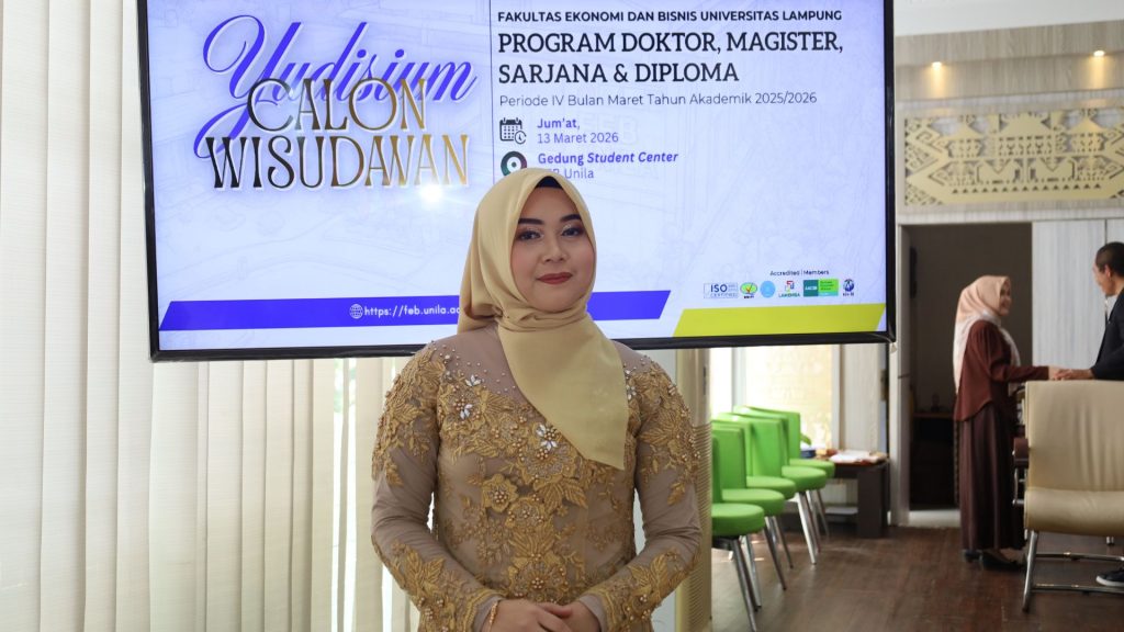 FEB Unila – Nadia Putri Maharani berhasil meraih predikat Magister Terbaik 2 Fakultas Ekonomi dan Bisnis Universitas Lampung (FEB Unila) pada pelaksanaan yudisium terbaru. Pencapaian ini merupakan hasil dari proses panjang yang ia jalani selama menempuh studi magister dengan penuh konsistensi dan ketekunan.