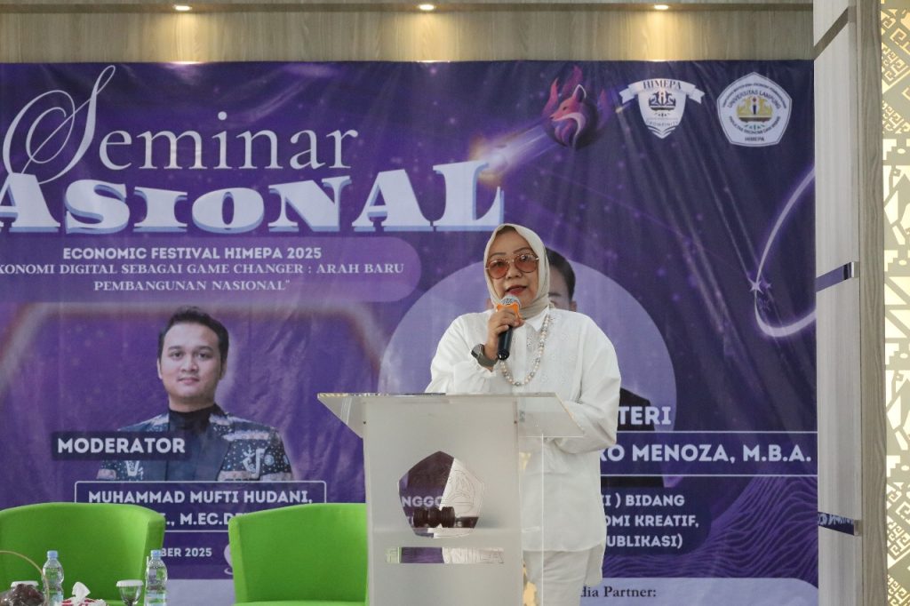 FEB Unila – Himpunan Mahasiswa Jurusan Ekonomi Pembangunan (HIMEPA) Fakultas Ekonomi dan Bisnis (FEB) Universitas Lampung gelar Seminar Nasional, dengan tema “Ekonomi Digital sebagai Game Changer: Arah Baru Pembangunan Nasional”, yang berlangsung di Auditorium Student Center FEB Unila pada Senin, 3 November 2025.
