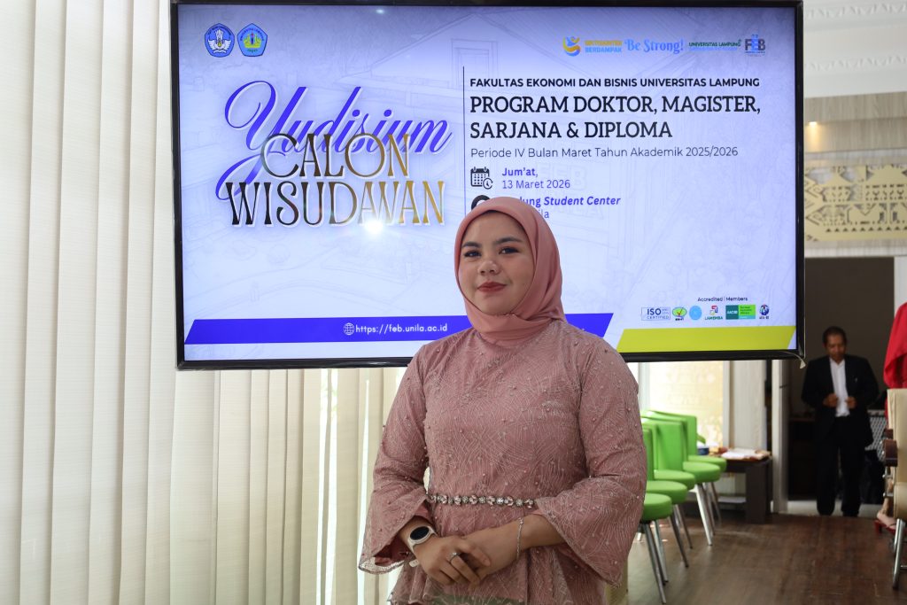FEB Unila – Marisa Triana Mazta berhasil meraih predikat Magister Terbaik 1 Fakultas Ekonomi dan Bisnis Universitas Lampung (FEB Unila) pada pelaksanaan yudisium terbaru. Pencapaian ini menjadi hasil dari proses panjang yang ia jalani selama menempuh studi magister, sekaligus menjadi bentuk dedikasi yang ia persembahkan untuk kedua orang tuanya.