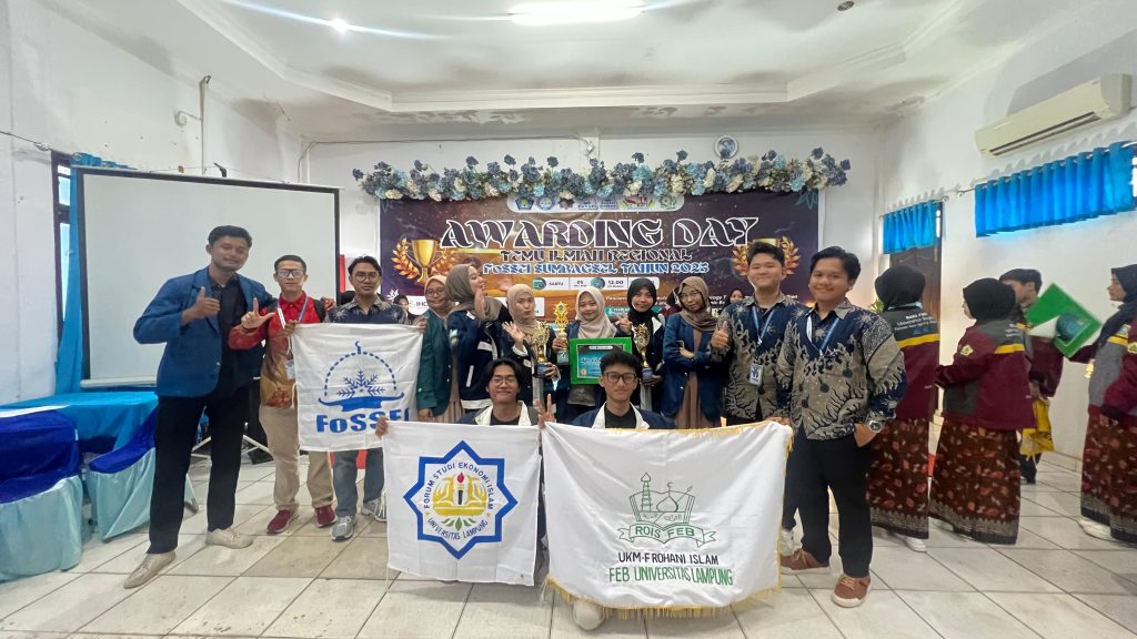 FEB Unila – Mahasiswa Fakultas Ekonomi dan Bisnis Universitas Lampung (FEB UNILA) kembali menorehkan prestasi membanggakan dalam ajang Temu Ilmiah Regional (TIR) Forum Silaturahim Studi Ekonomi Islam (FoSSEI) Sumatera Bagian Selatan (Sumbagsel) 2025 yang diselenggarakan di Universitas Prabumulih pada 4–6 Juli 2025.
