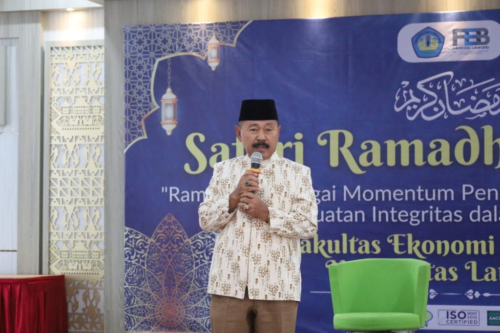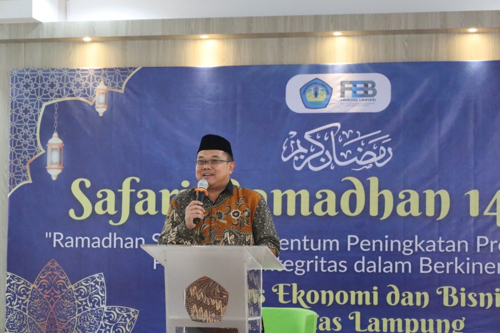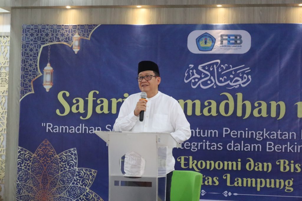 Dalam sambutannya, Dekan FEB Unila Prof. Dr. Nairobi, S.E., M.Si., menyampaikan harapannya agar kegiatan Safari Ramadhan mampu mempererat hubungan antar sivitas akademika. Ia menekankan pentingnya momentum Ramadhan sebagai sarana memperkuat kebersamaan dan nilai persaudaraan di lingkungan kampus.