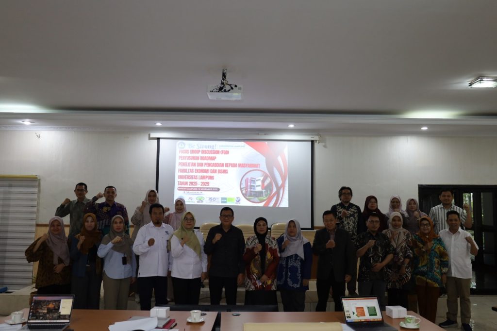 FEB Unila – Fakultas Ekonomi dan Bisnis Universitas Lampung (FEB Unila) menggelar Focus Group Discussion (FGD) Penyusunan Roadmap Penelitian dan Pengabdian kepada Masyarakat Tahun 2025–2029 di Ruang D101 Gedung D FEB Unila pada Rabu 12 November 2025.